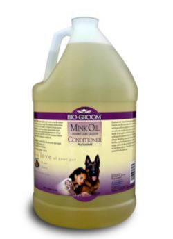 Spray lightly and evenly over the entire coat. Mink Oil Spray intensifies all colors on both long- and short-coated breeds. The natural ingredients promote healthy coat development and growth leaving the coat manageable and show ring ready. Digestive Care. Bio-Groom Dog and Cat Mink Oil Spray 12-Ounce. Bio-Groom Mink Oil Spray is a coat glosser conditioner and sun shield enriched with Vitamin E to give the hair a beautiful deep down luster and sheen with one application. Mink Oil Spray enhances shine and protects coat colors. Measures 8-45-inch length by 2-27-inch width by 2-27-inch height. Item 4 Bio-Groom Mink Oil Instant Coat Glosser Conditioner Spray 12 Ounce 3 - Bio-Groom Mink Oil Instant Coat Glosser Conditioner Spray.