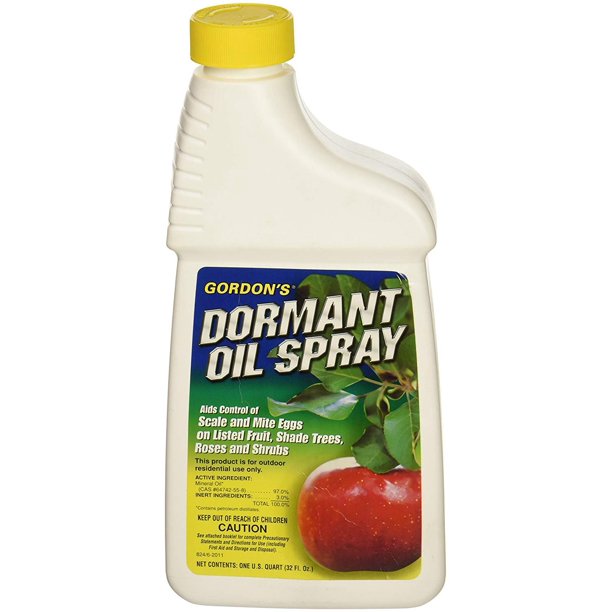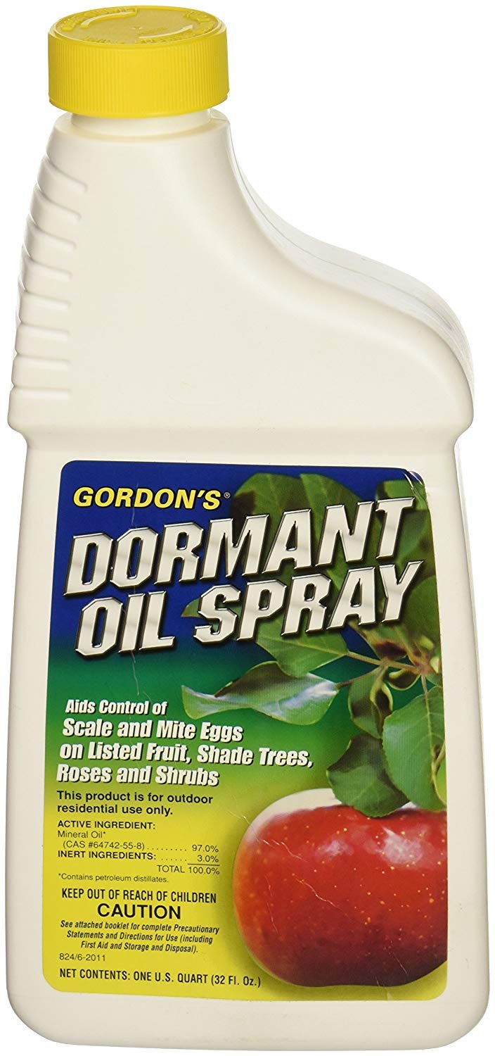 Dormant oil spray for evergreens. Mix 2 12 ounces of Volck Oil Spray per gallon of water for application during the growing season or 5 13 ounces per gallon for use on dormant trees. Using dormant oil on fruit trees doesnt completely eliminate the problem with these pests but it is the best way to cut off most of the population leaving a simpler problem later in the season. Dormant oil is NOT to kill currently active pests.